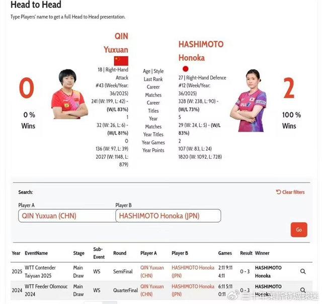 至于决赛,桥本帆乃香具备很大的胜算,从历史战绩来看,覃予萱两次被对手3-0零封,分别是2024WTT奥洛穆茨支线赛以及2025WTT太原常规挑战赛。如今桥本帆乃香延续本周期面对国乒众将一如既往的火热状态,“小蘑菇头”在缺少名帅指导的情况下想战胜这个“大魔头”简直就是不可能完成的任务。